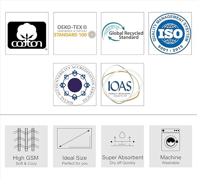 - Premium Quality: Made from 630 grams per square meter (GSM) of pure cotton, these towels are not only plush but also durable, providing long-lasting comfort and durability for everyday use.