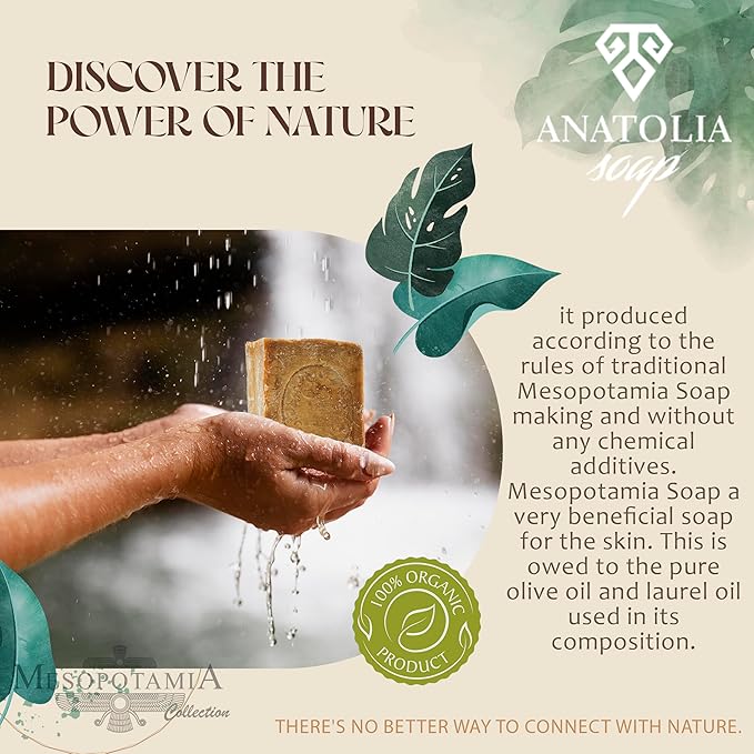 - ANATOLIA SOAP - 100% ALEPPO OLIVE OIL MESOPOTAMIAN SOAP: Experience the ancient beauty secret of Mesopotamia with this 100% olive oil soap from Anatolia. This authentic Aleppo Soap is crafted using traditional techniques to deeply nourish and revitalize your skin