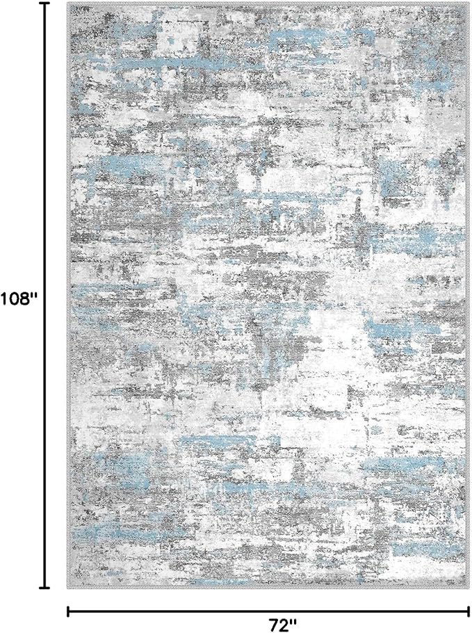Area Rugs for Living Room: 6x9 Abstract Washable Rug Modern Neutral Large Soft Stain Resistant Non-Slip Backing Machine Table for Bedroom Dining Room Indoor Home Office Carpet - Blue Grey