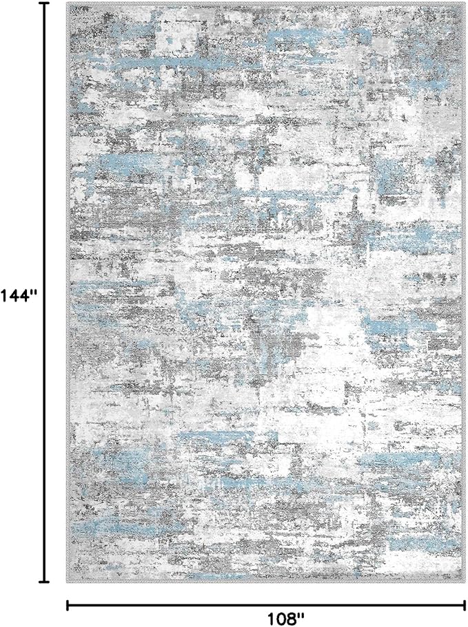 Area Rugs for Living Room: 9x12 Abstract Washable Rug Modern Neutral Large Soft Stain Resistant Non-Slip Backing Machine Table for Bedroom Dining Room Indoor Home Office Carpet - Blue Grey