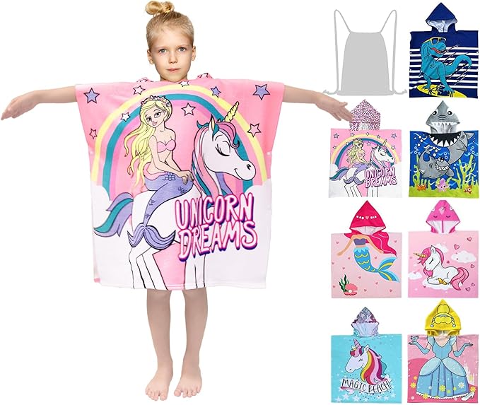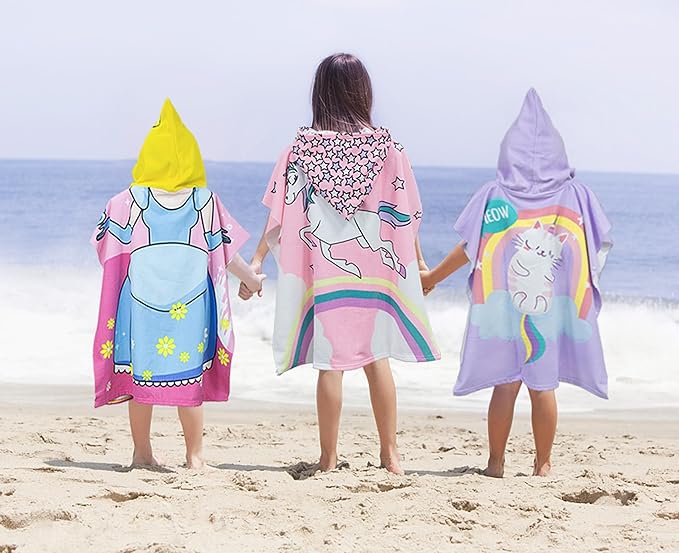 - ?Cute Giftable?The prints are so cute and versatile. The colors are vibrant. The hoods are designed for the character and can cover kids' heads well from feeling cold. The hood on it helps with drying kids' hair. This is a fun towel and very giftable.