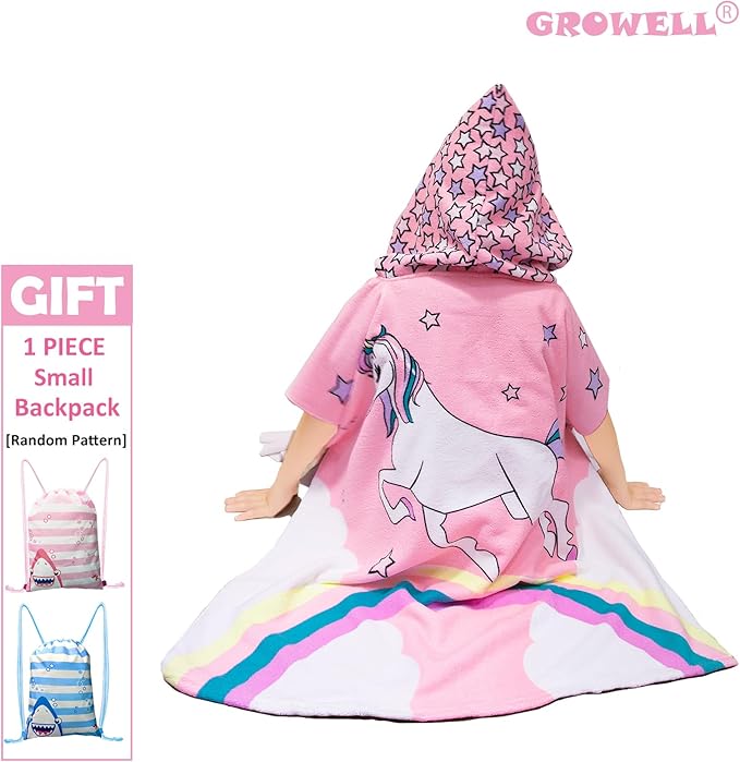 - ?Light Weight?Growell's kids hooded bath towels are for summer and not thick. The weight is 40% less than a traditional beach towel in terry cloth. The microfiber material is 3 times faster drying compared to cotton. These features keep kids dry and feel more comfortable with a light towel on. There's a small bag for this design as a gift.