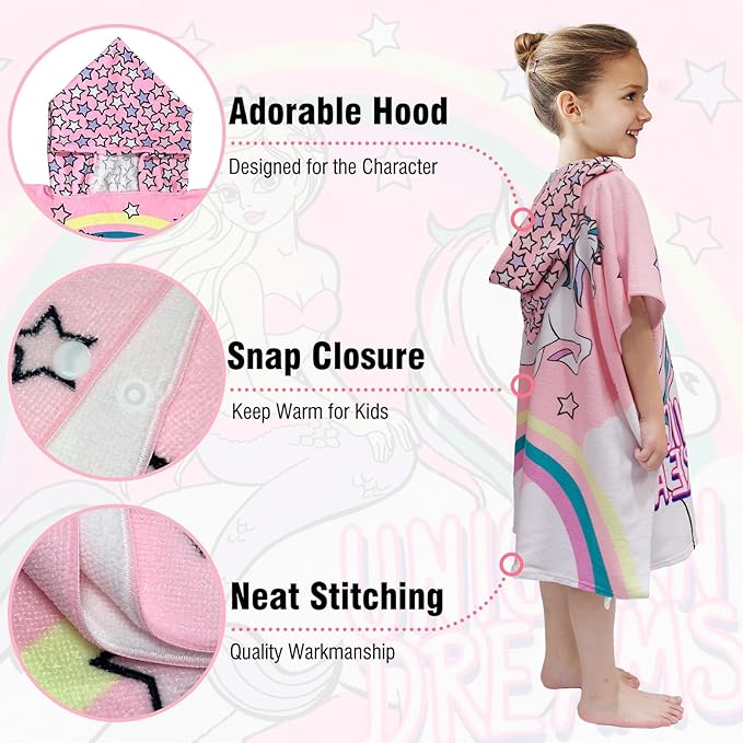 Hooded Kids Beach Towels - Toddler Bath Towel Girls Boys Swim Cover-ups for Ages 4 to 10 Kids Pool Towels Quick Dry Lightweight Soft Microfiber Poncho 30x30 with Bag (Mermaid Unicorn)