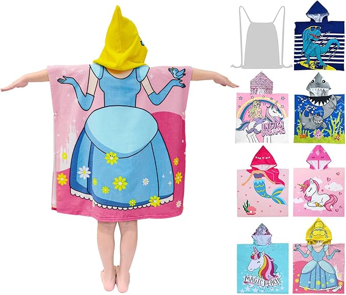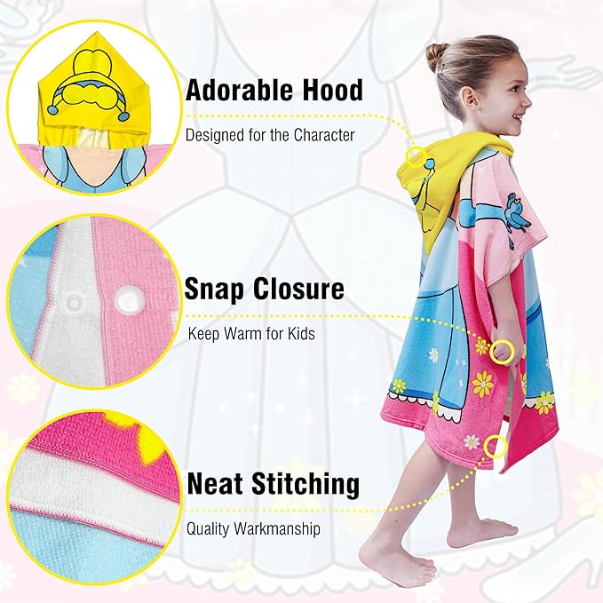 - ?Cute Giftable?The prints are so cute and versatile. The colors are vibrant. The hoods are designed for the character and can cover kids' heads well from feeling cold. The hood on it helps with drying kids' hair. This is a fun towel and very giftable.