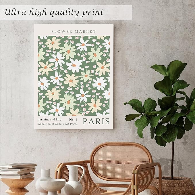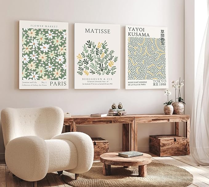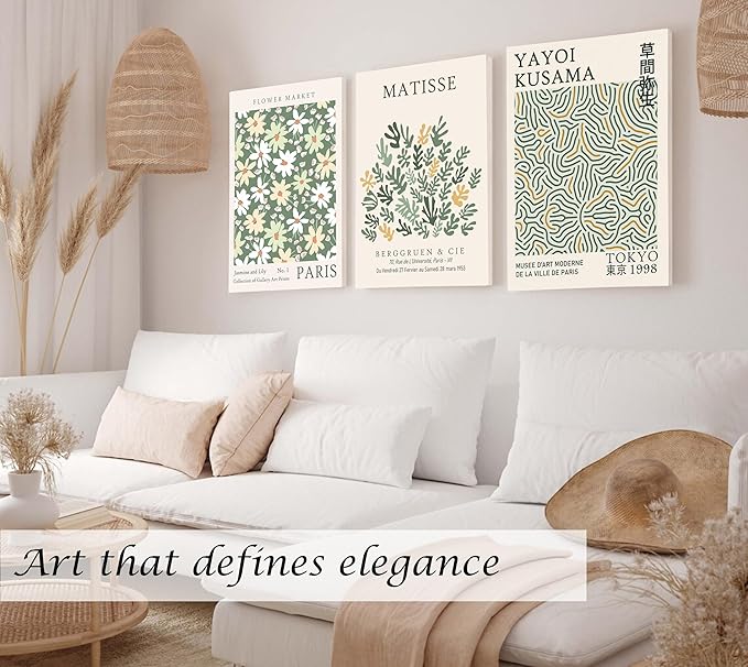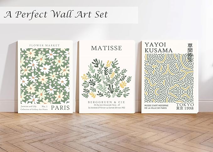 - Green Wall Art: Our Framed Matisse Wall Art canvas would go amazing with your sage green botanical wall decor, aesthetic wall decor and boho bedroom wall décor. Each framed Boho wall art prints size is 18x24 inches and comes with wall hooks