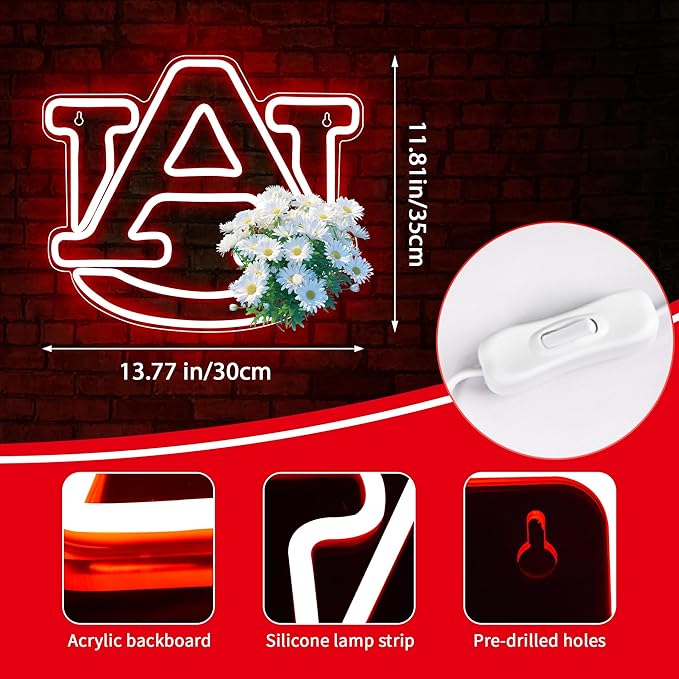 - ✔Easy to Install ✔:Our university neon LED sign just needs to be plugged into a USB port,which you can connect to a computer/charger/portable power supply to use.College neon lights comes with a chain, two hanging holes, two adhesive hooks, two screws and 1.9 meters of power cord.You can freely choose to paste or hang our university sports team logo neon sign.It is important to ensure that installation is firm.