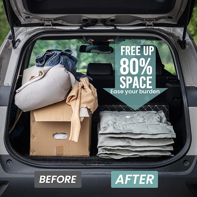 - Versatile Use: Our vacuum seal bags are based on their unique material composition. They can be used as storage bags for moving, camping, and car travel. When fully inflated, they can also be used as pillows, a unique feature of our space bags. They are also suitable for home storage, organizing beddings and clothing