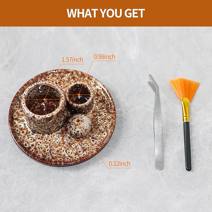 - 100% Ash Catcher: The combination of an adequate base size, measuring 5.1 inches, is perfect for keeping the white sage and palo santo inside without worrying about ash falling all over the place. The incense hole measures 0.12 inches. The palo santo holder is 0.98 inch, and the sage holder is 1.57 inches.