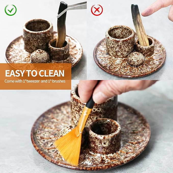 - Functional: This palo santo hold solves all your problems, overall a more than adequate and ultimately versatile product. This incense holder can be used as a sage burner, an abalone shell replacement, a smudge bowl, a smudge plate, a candle holder, an incense stick holder, and an incense burner.