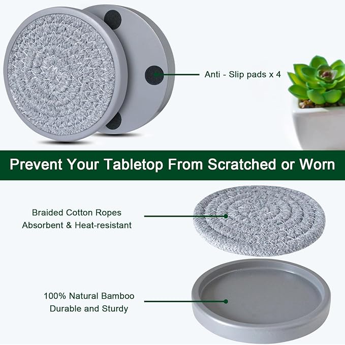 - 🍺Easy to Clean: Just get out the woven coasters, rinse coasters with water, and hang up to dry, Diameter 4 inches; reusable coffee table coasters come with a gift package, perfect for housewarming and kitchen gifts.