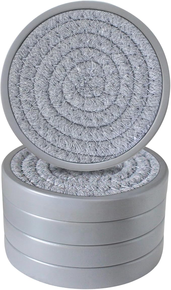Drink Coasters Set of 5, Coasters for Drinks Absorbent, Wood Coasters for Coffee Table, Housewarming Gift for Farmhouse Home Decor,4 inches (Gray)
