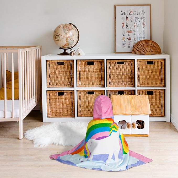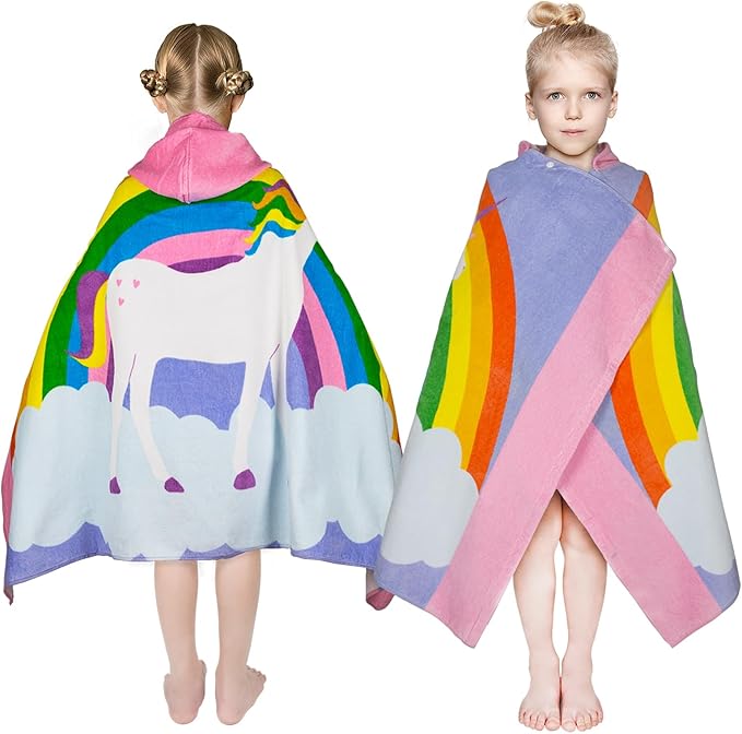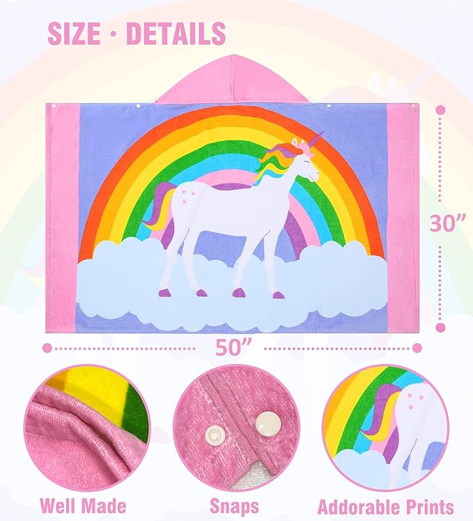 Toddler Bath Towel Hooded - Cotton Kids Beach Towel 30"x50" for Ages 3 to 10, Soft Terry Poncho Towel as Pool Swim Cover Ups for Girls Boys (Rainbow Unicorn Pink)