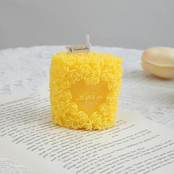 Rose Flower Clusters Aesthetic Scented Candle,Love Heart Handmade Soy Wax Aroma Decorative Candle for Table Photo Prop Valentine's Day Wedding Birthday Gift,Prefect for Meditation Stress (Yellow)