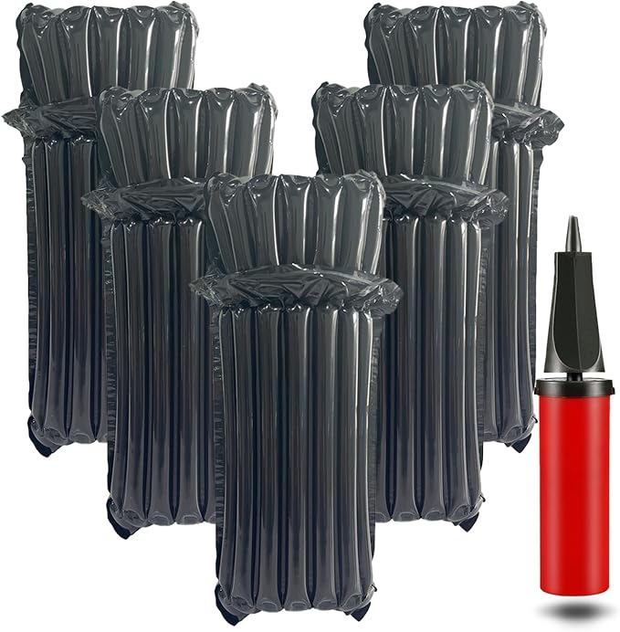 - Notice:After about 7-15 pumps it is totally inflated.The wine bottle bags allows air to be pumped in but it doesn't seep out.When inflating,if there are a few air columns do not expand,please do not worry,repeatedly knead the air inlet of this gas column with your hand, and then inflate,repeat this operation,you can make all the gas columns work normally.