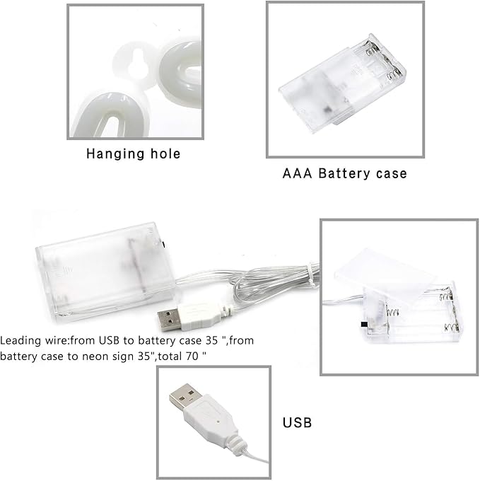 - Dual Power Supply and Easy use Girly Room Decor: USB (included) and 3 AA batteries (not included) power supply, Low energy consumption and long lifespan; You can either use batteries or put it in power bank, USB port, computer etc; There is a pre-drilled hole for easy hanging; You can hang the neon heart light anywhere indoor you prefer; The heart lights plug in will bring romantic atmosphere and aesthetic to your home