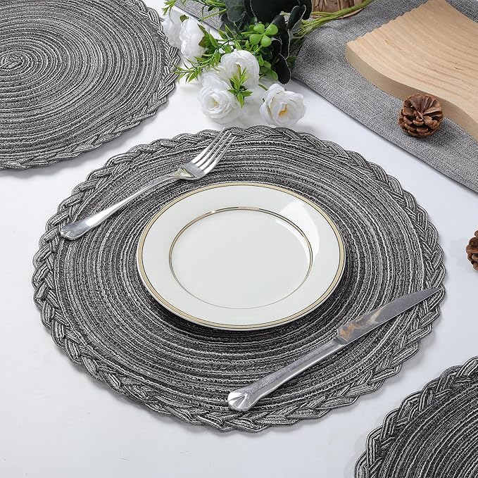 fanquare Round Braided Placemats Set of 8, Woven Kitchen Table Mats 15 Inch Round Woven Table Mats Cotton Polyester Place Mats for Dining Wedding Party