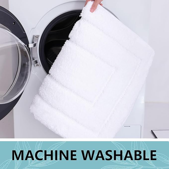 Buganda Bathroom Rugs, 36" x 24", Soft and Absorbent Microfiber Bath Rugs, Non-Slip Shaggy Shower Carpet, Machine Wash Dry Bath Mats for Bathroom Floor, Tub and Shower, White
