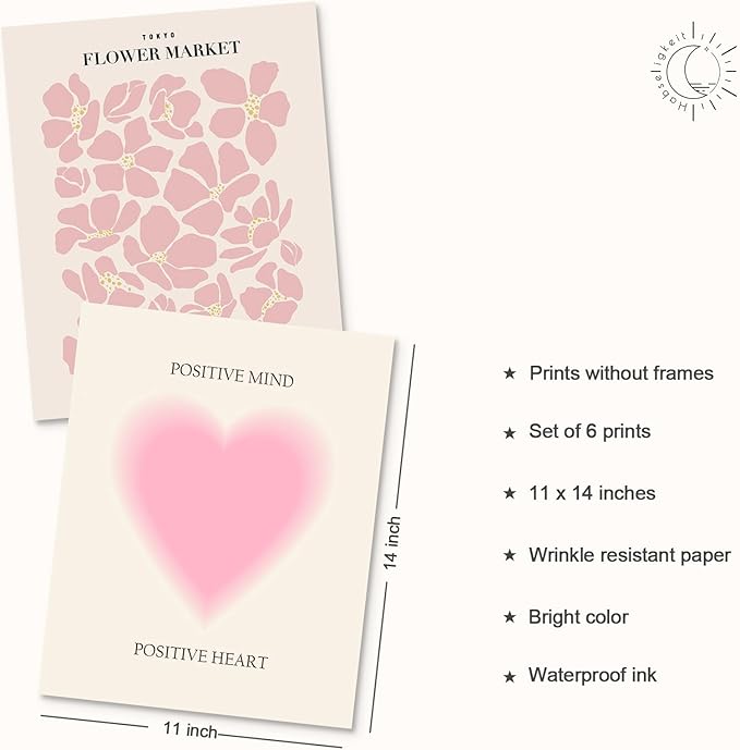 Habseligkeit Pink Matisse Wall Art Prints, Abstract Wall Art Exhibition Posters, Vintage Wall Art Prints, Retro Room Decor for Girl's Bedroom 11x14 inch, Unframed