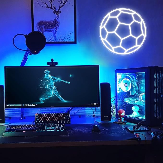 - ⚽【Safety and Durable】Soccer Neon Light is made of LED neon strips and acrylic boards. Instead of traditional glass neon lights, it is brighter but not glaring, safer, energy-saving, no noise, no heat, no risk of glass breakage, which endures overheating and short circuitry better for a long time, lifetime up to 50, 000 Hours.
