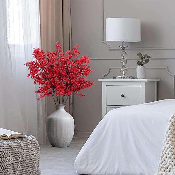 - Beauty Farmhouse Decor Artificial Red Flowers: Silk flower Babys Breath with long stems can be used as a bush, or cut apart for bouquets, potted plants, and multiple projects. Perfect to add color to any arrangement