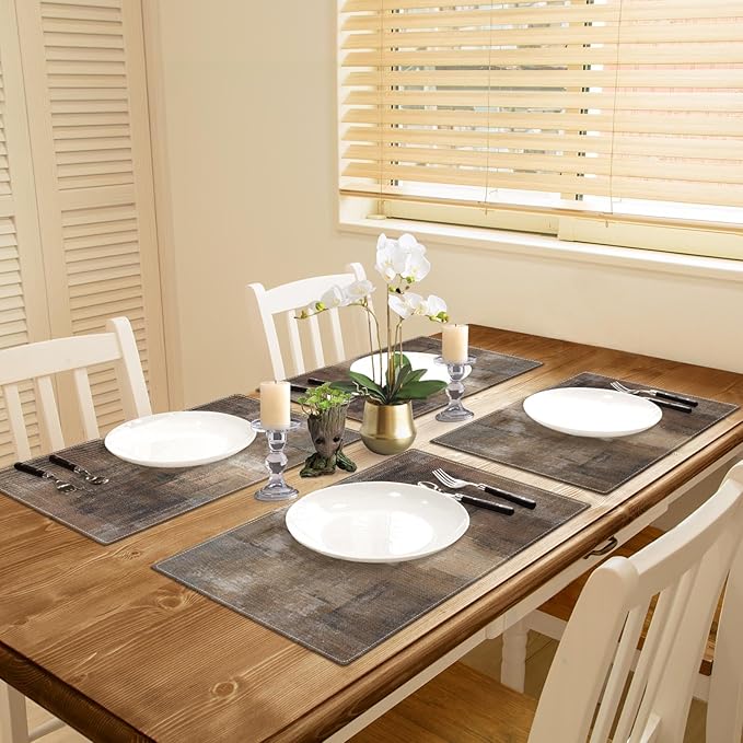 Emvency Farmhouse Placemats Set of 4, 12x18 Inch Abstract Grey and Dark Brown Art Painting Table Mats for Outdoor Home Party Kitchen Dining Decoration