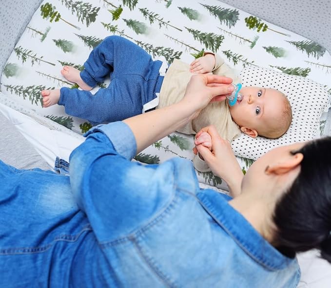 - WOODLAND DESIGN: The fitted sheets and easy to use, especial and beautiful design adds a cozy and comfortable look for little baby?s room. And other woodland nursery bedding accessories: crib sheets, portable crib sheets and changing pad covers