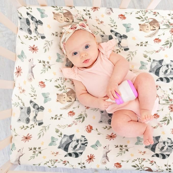 - WOODLAND DESIGN: The fitted sheets and easy to use, especial and beautiful design adds a cozy and comfortable look for little baby?s room. And other woodland nursery bedding accessories: crib sheets, portable crib sheets and changing pad covers