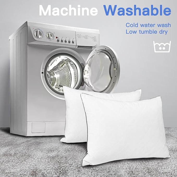 - EASY TO CLEAN & MAINTAIN - These feather-down pillows are durably designed and made to last, simply pop them in the washer and tumble dry on low heat. No iron. No bleach. When you just got the pillow, please clap the two sides of the pillow to make it fluffy, and wait 30 minutes to return to the original state shape. Recommended to use with pillowcase/sham/pillow cover.