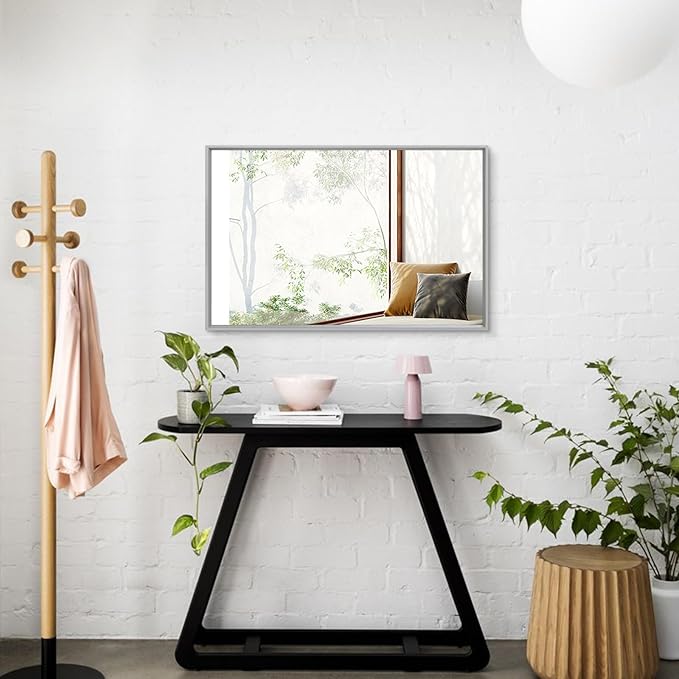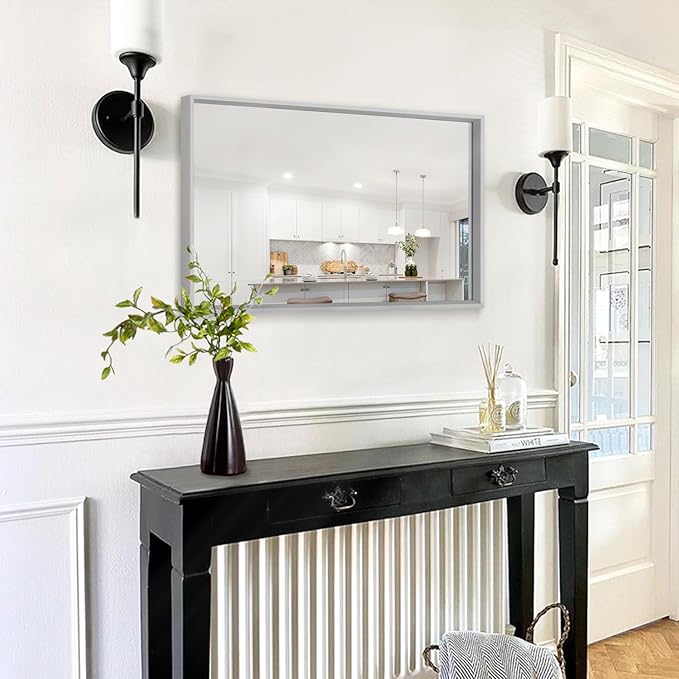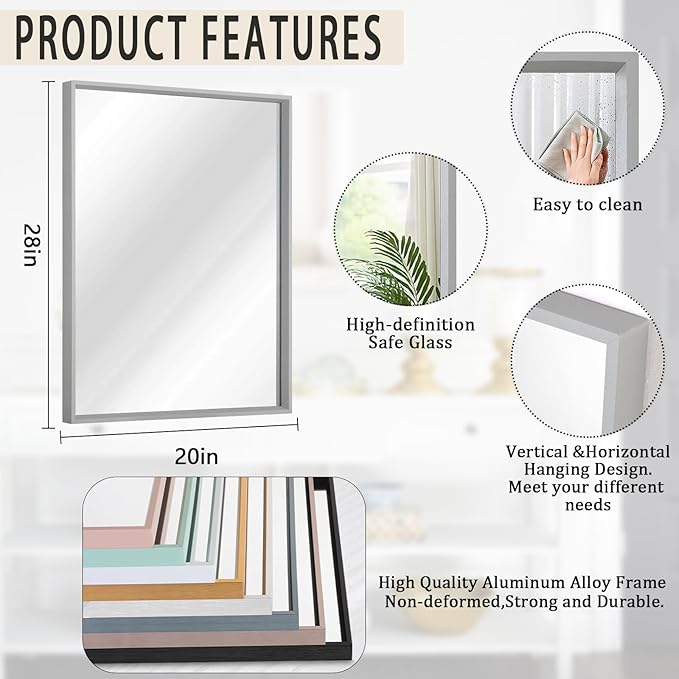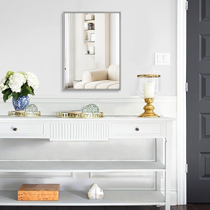 AAZZKANG Grey Wall Mirror Decorative Metal Framed Mirrors 28"x20" Modern for Bedroom Bathroom Living Room Home Entryway Rectangular