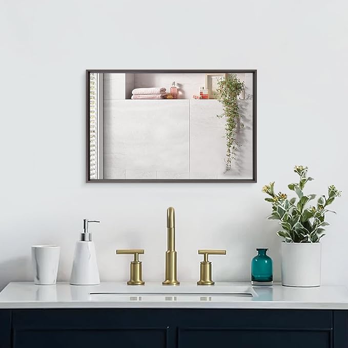 AAZZKANG Rectangular Metal Frame Mirror Retro Bathroom Bedroom Wall Mirrors Home Decor 20"x16"