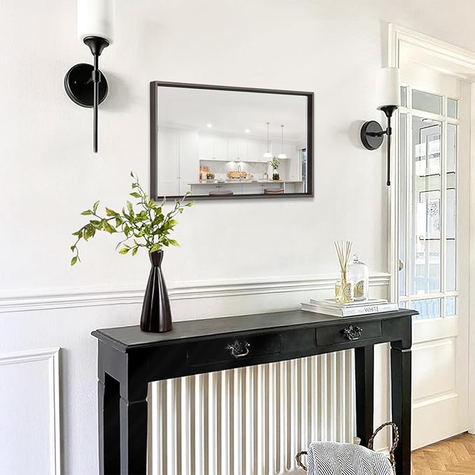 - Chic Design: This decorative wall mirror has a rectangular shape that is better vertical on your wall depending on your decor;And with a modern industrial design,not only adds a stylish element but also makes the room appear brighter and more spacious