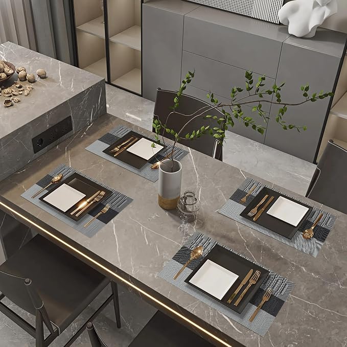 - 【Double-sided Use】With a luxurious vinyl woven texture, non-slip and resist fading,precision cutting and heat-trimmed edges, Elegant and Classic Design, They provide heat resistance 80℃ /176℉ for protect your table, elevating your dining experience