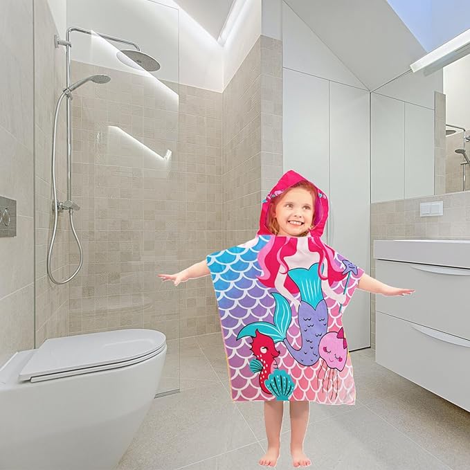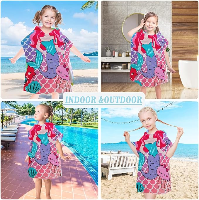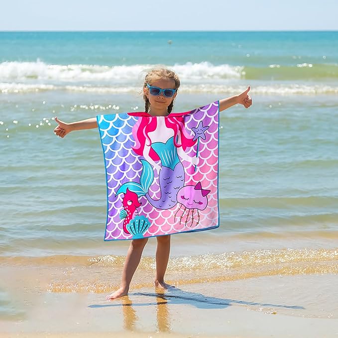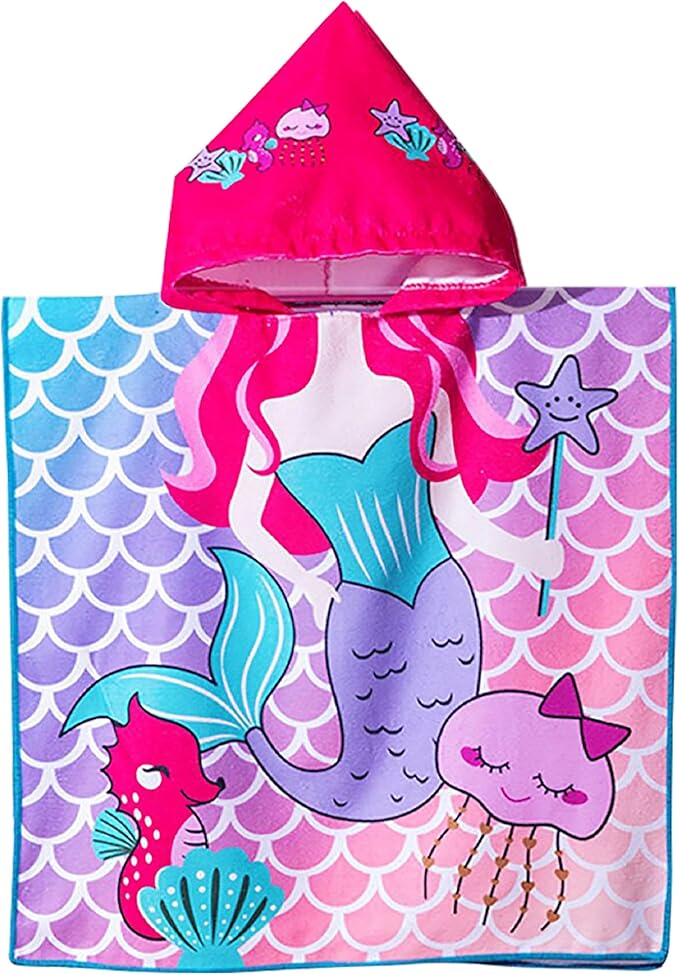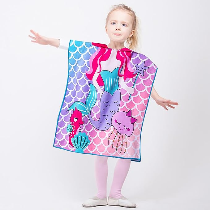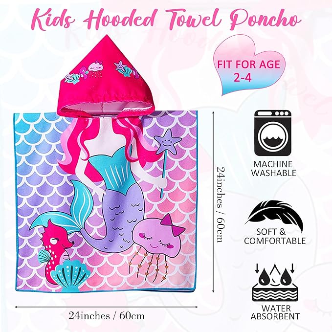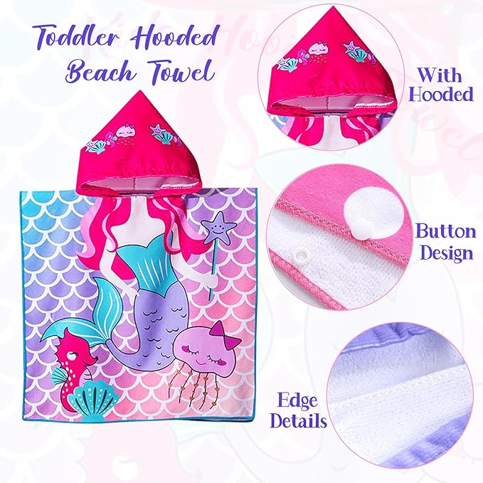 - SIZE -The mermaid hooded toddler bath beach towel designed specifically for girls aged 2 -4 years. Measures 24" x 24", providing ample coverage while also serving as a stylish and practical swim cover-up poncho for little girls.