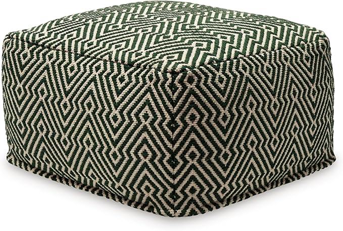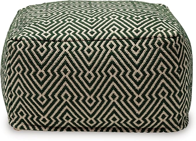 Signature Design by Ashley Abacy Casual Square Handwoven Pouf with Geometric Pattern, Green & Beige