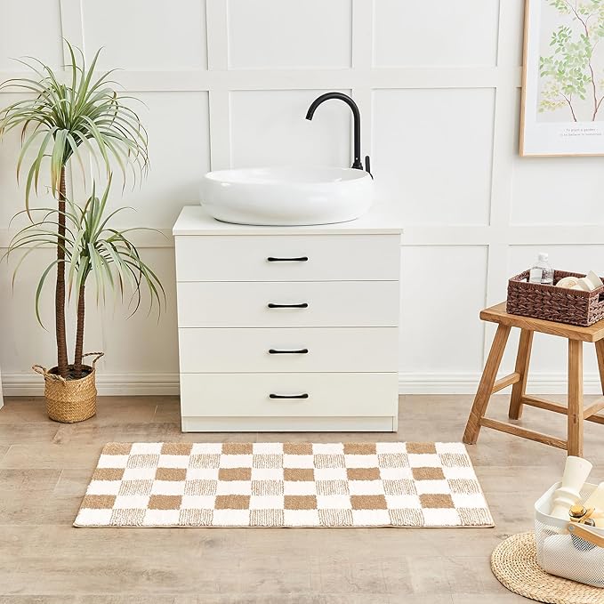 - 【Unique Checkered Design】The CozeCube Checkered bath mat chose one of the most iconic American checkered pattern, comes in two colors, with cream white being one of which. During the holiday season plaid and checkered patterns spring up all around you. it remains popular today because of its cheery, bright appearance. The CozeCube Checkered bath mat brings you a festive atmosphere.