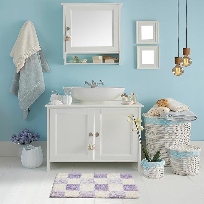 CozeCube Checkered Bath mats Non Slip, Fluffy Absorbent Microfiber Bath mat Washable, Aesthetic Bathroom Rugs, Large Bath mat for Bathroom Floor, Tub and Shower, Purple, 36"X24"