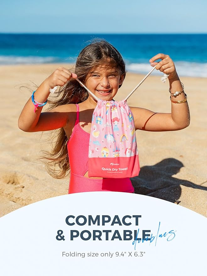 Kids Beach Towel 60''x30'', Quick Dry, Sand Free, Compact, Lightweight, Absorbent, Girls & Boys Large Microfiber Towels for Pool, Swim, Cruise Essentials, Princess
