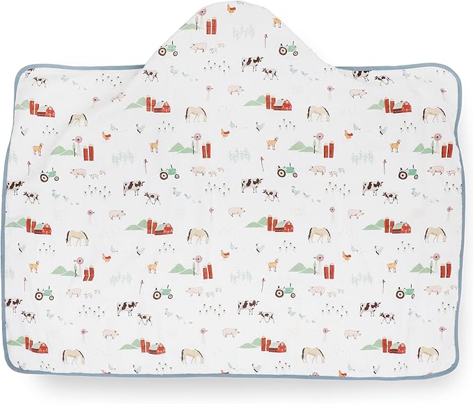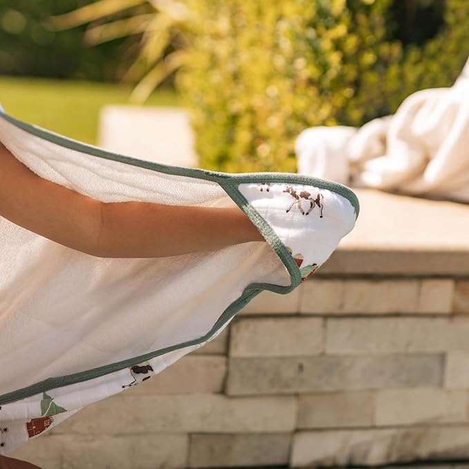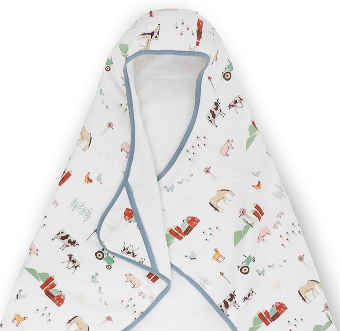 Little Unicorn Cotton Muslin & Terry Hooded Towel, Larger Size 1-6 Years (Farmyard)