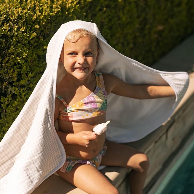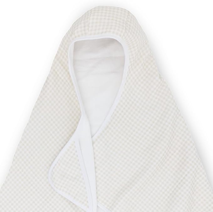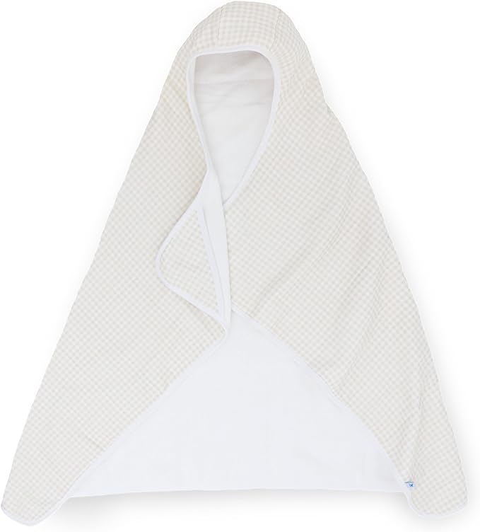 Little Unicorn Cotton Muslin & Terry Hooded Towel, Larger Size 1-6 Years (Tan Gingham)
