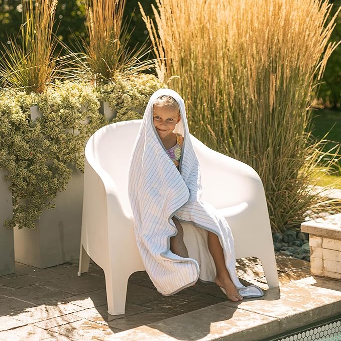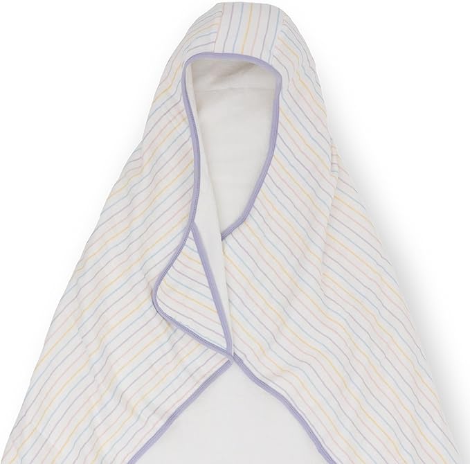 Little Unicorn Cotton Muslin & Terry Hooded Towel, Larger Size 1-6 Years (Unicorn Stripe)