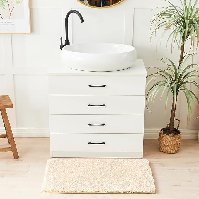 Douceur Beige Bathroom Rugs Non Slip, Luxury Thick Plush Shaggy Bath Mats Washable, Fluffy Absorbent Rugs, Quick Dry Shower Mat Gifts, 32" x 20"