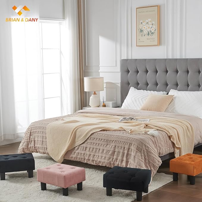 BRIAN & DANY Small Foot Stool, Linen Foot Stools with Legs, Stable Small Footstool for Living Room, Black
