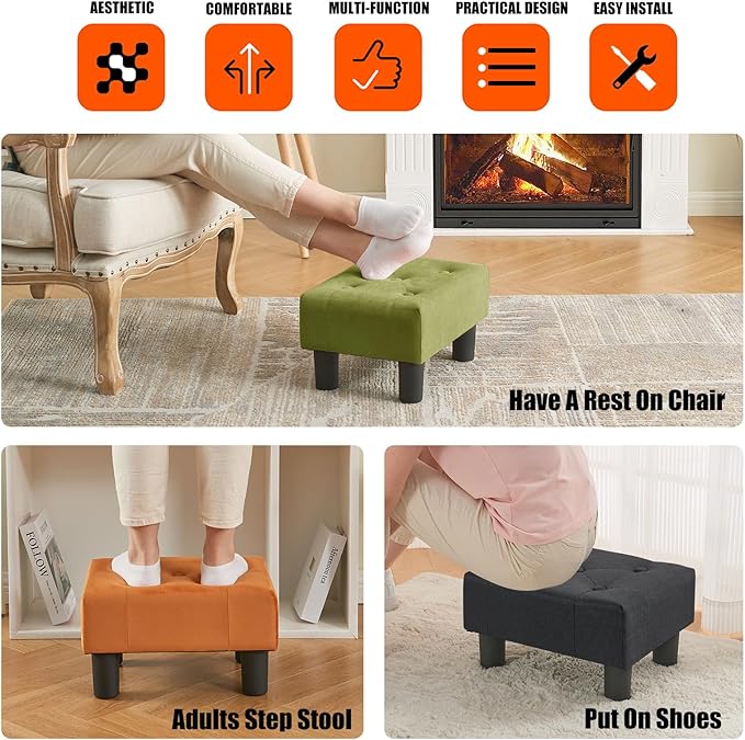 - 【Adaptable Functionality】 Its varied features make the stylish small footrest ottoman a multipurpose product. You can use it when, putting on shoes at the entryway, as extra seating in the living room, having a rest on a chair, or using it as a footrest for under desk.