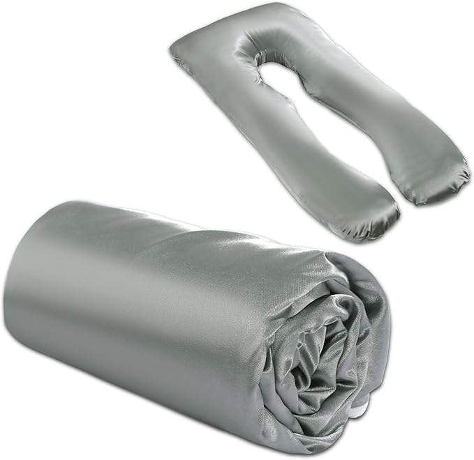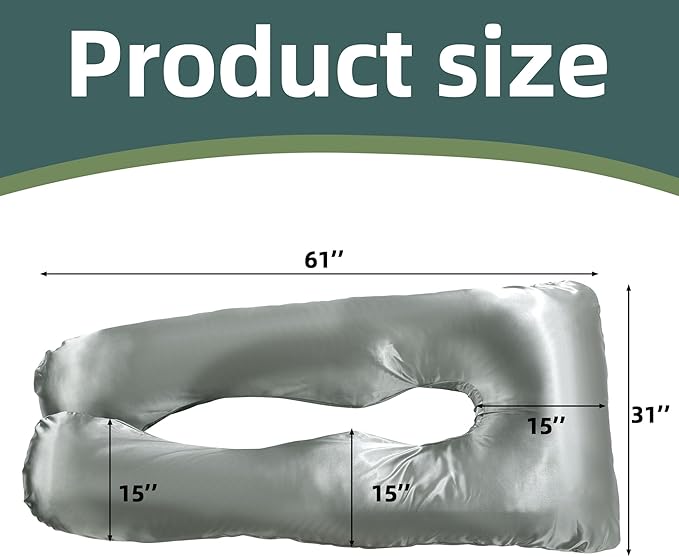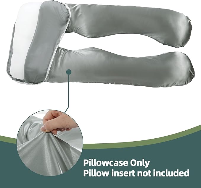 Silky Satin Pregnancy Pillow Cover (ONLY Pillowcase), U Shaped Luxurious Smooth Maternity Pillow Cover, Soft & Breathable Large Pillow Protector with Hidden Zip for Side Sleeper, Dark Grey
