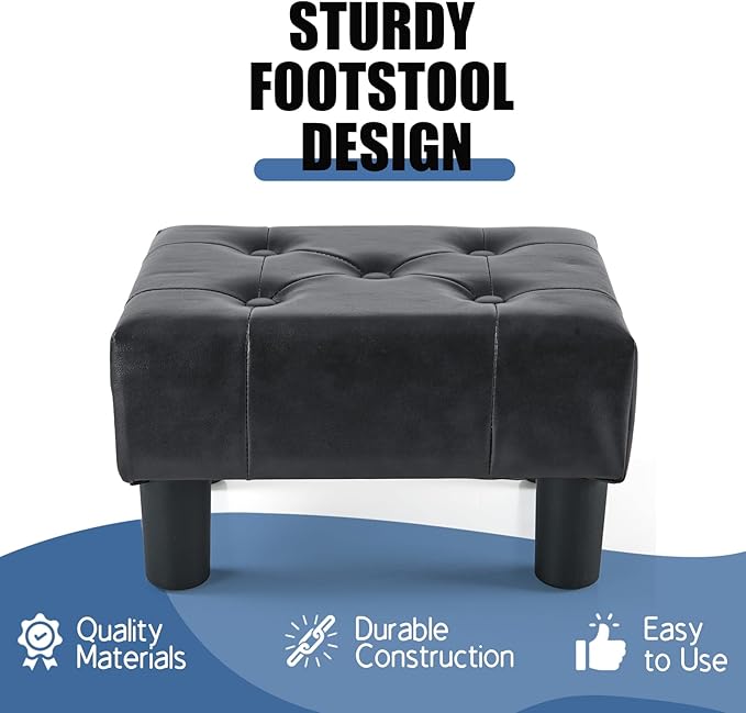BRIAN & DANY Small Foot Stool, Leather Foot Stools with Legs, Stable Small Footstool for Living Room, Black