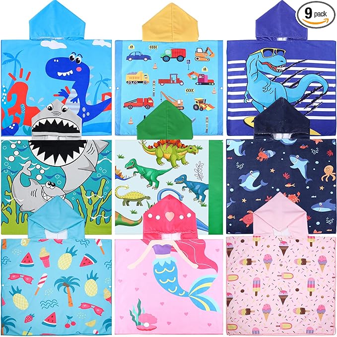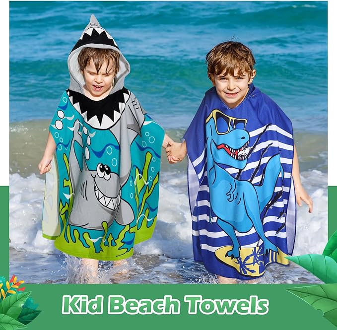 - Cartoon Pattern Design: printed with cute cartoon patterns, such as dinosaur, shark, mermaid, and so on, our kids' towels with hood are lovely and eye catching, in line with the preference of most boys and girls, and can make beaches, swimming pools and water parks more interesting and enjoyable