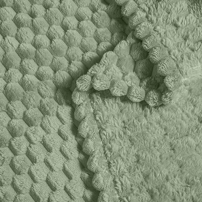 Vessia Flannel Fleece Throw Blanket, 3D Jacquard Sage Green Fuzzy and Warm Blanket for Couch,Sofa,Bed,Chair, 300GSM Super Soft Touch Cozy Throw for All-Season Home Decor(50x40inch)