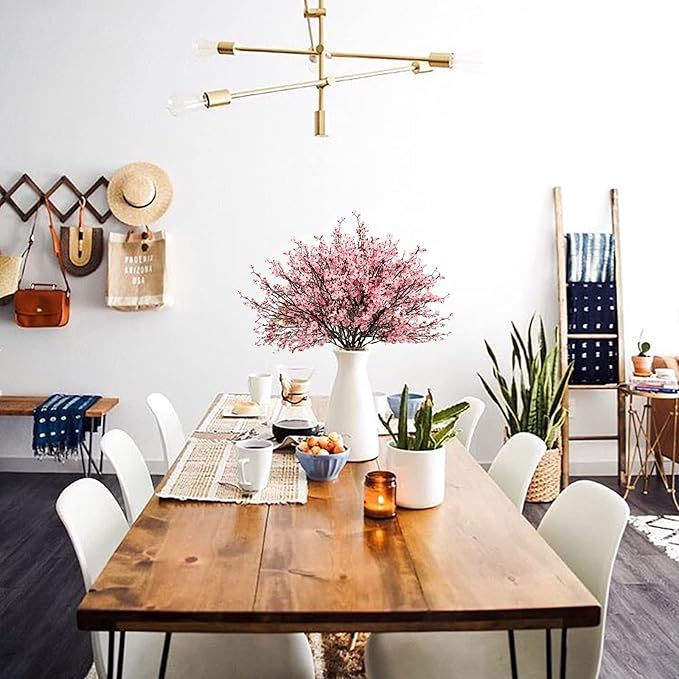 Uieke 30 Pcs Artificial Flowers Baby Breath Faux Pink Artificial Gypsophila Bouquet Fake Silk Flowers Real Touch for Home Office Kitchen Wedding Wall DIY Room Farmhouse Décor