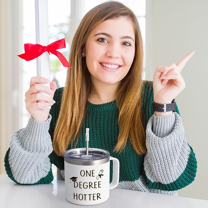 Lifecapido Graduation Gifts, One Degree Hotter 14oz Stainless Steel Coffee Mug with Handle, College Masters Degree Phd Graduation Gifts High School Graduation Gifts Christmas Gifts for Her Him (White)