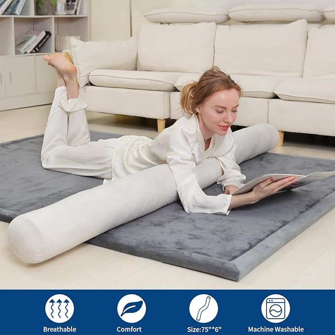 - UNIQUENESS BODY PILLOW: Our body pillow stands apart from ordinary bed pillow, boasting an impressive 75 inch length that offers comprehensive support from head to toe. Extra long pillow also makes it suitable for use as a kids' playpen.Its adjustable shape adds versatility, allowing it to be easily transformed into a decorative throw pillow when bundled together